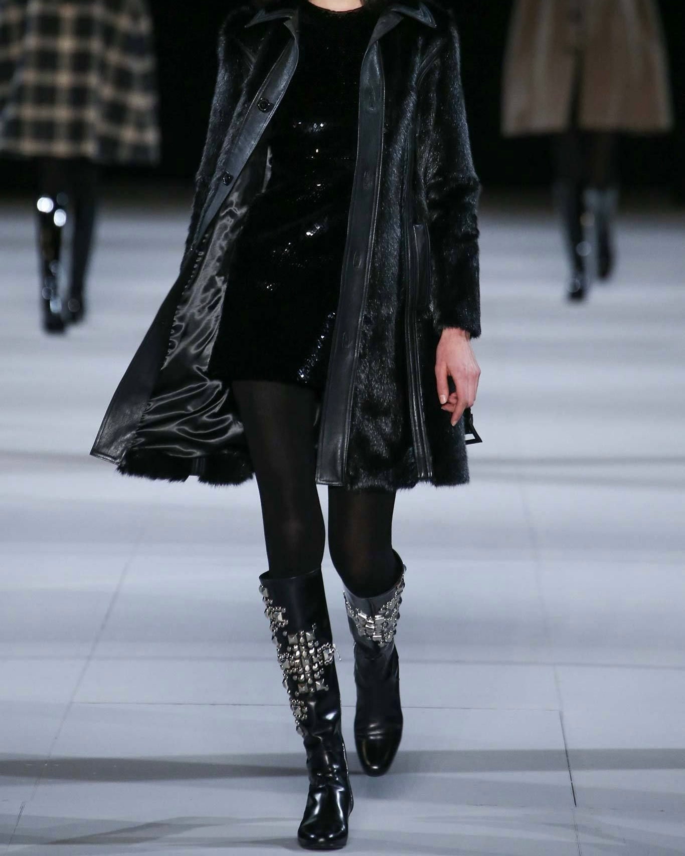 Yves Saint Laurent FW2014 Studded Black Leather Riding Boots - EU 40